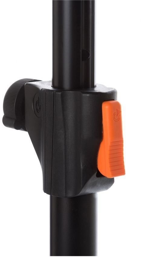 - – Mecanismo con pulsador que permite la elevación y retención del tubo con pin de acero de seguridad.